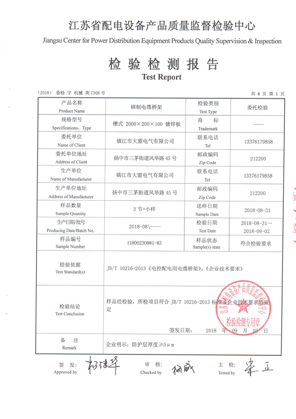 镀锌桥架检验检测报告