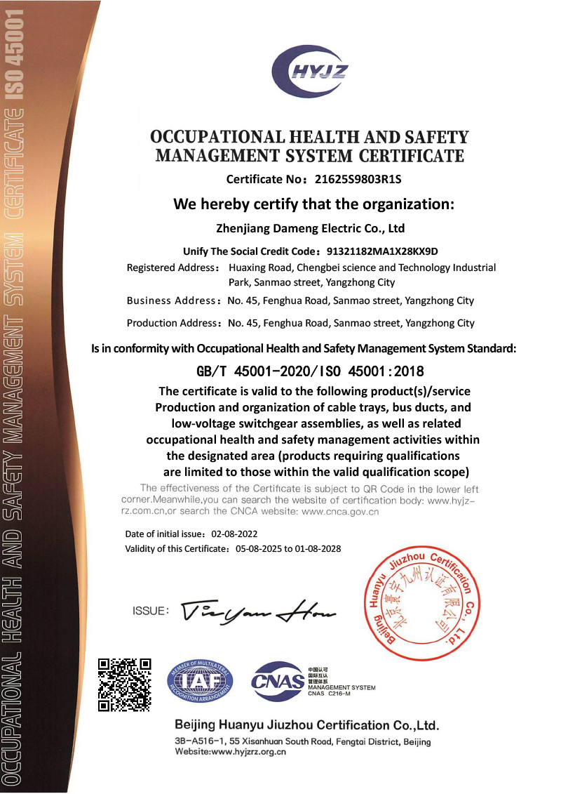 职业健康安全管理体系认证证书